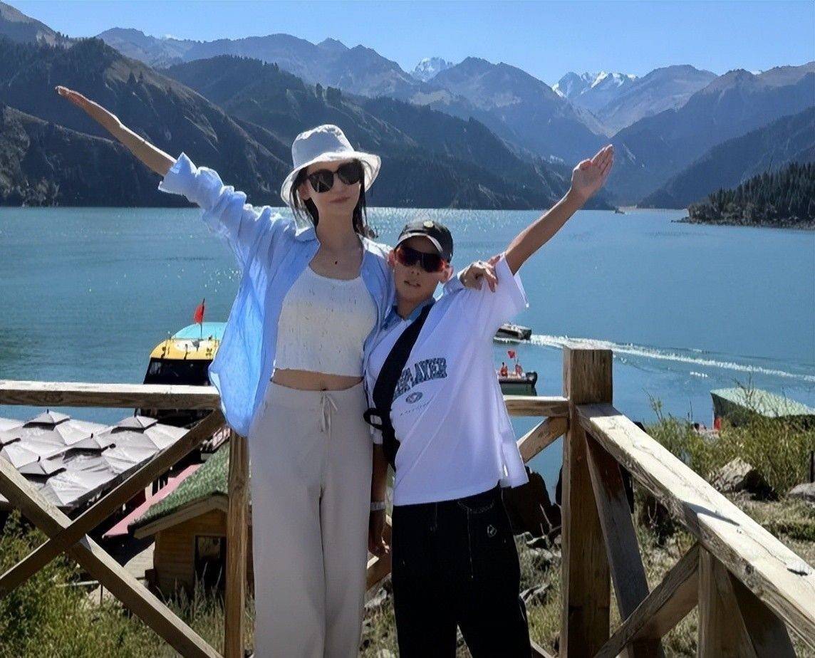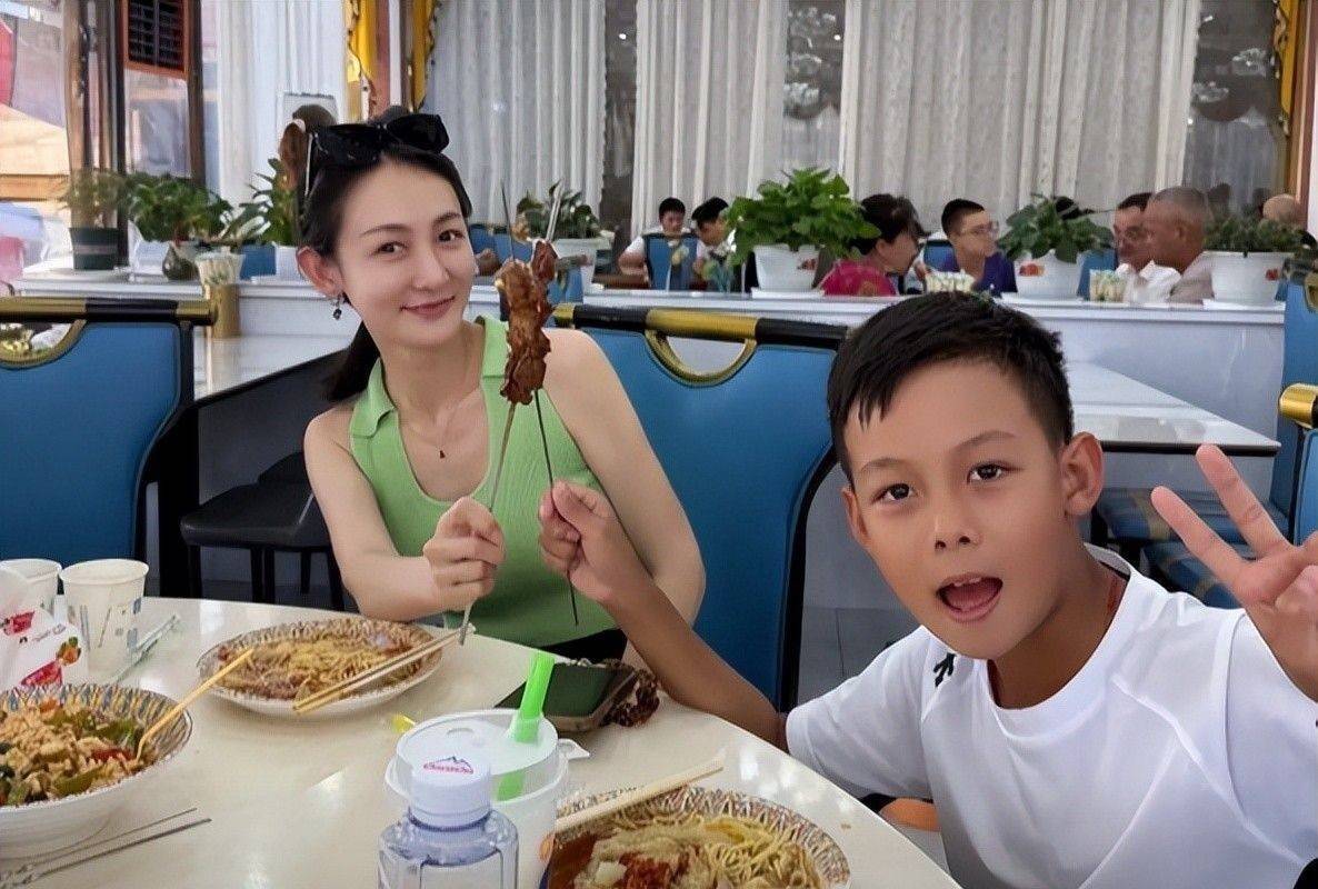 照片中她身穿绿色背心,与孩子们一同策马草原、踏足沙漠、品尝地道美食,小儿子的肤色或许正是在这段旅程中被阳光亲吻得略显黝黑。