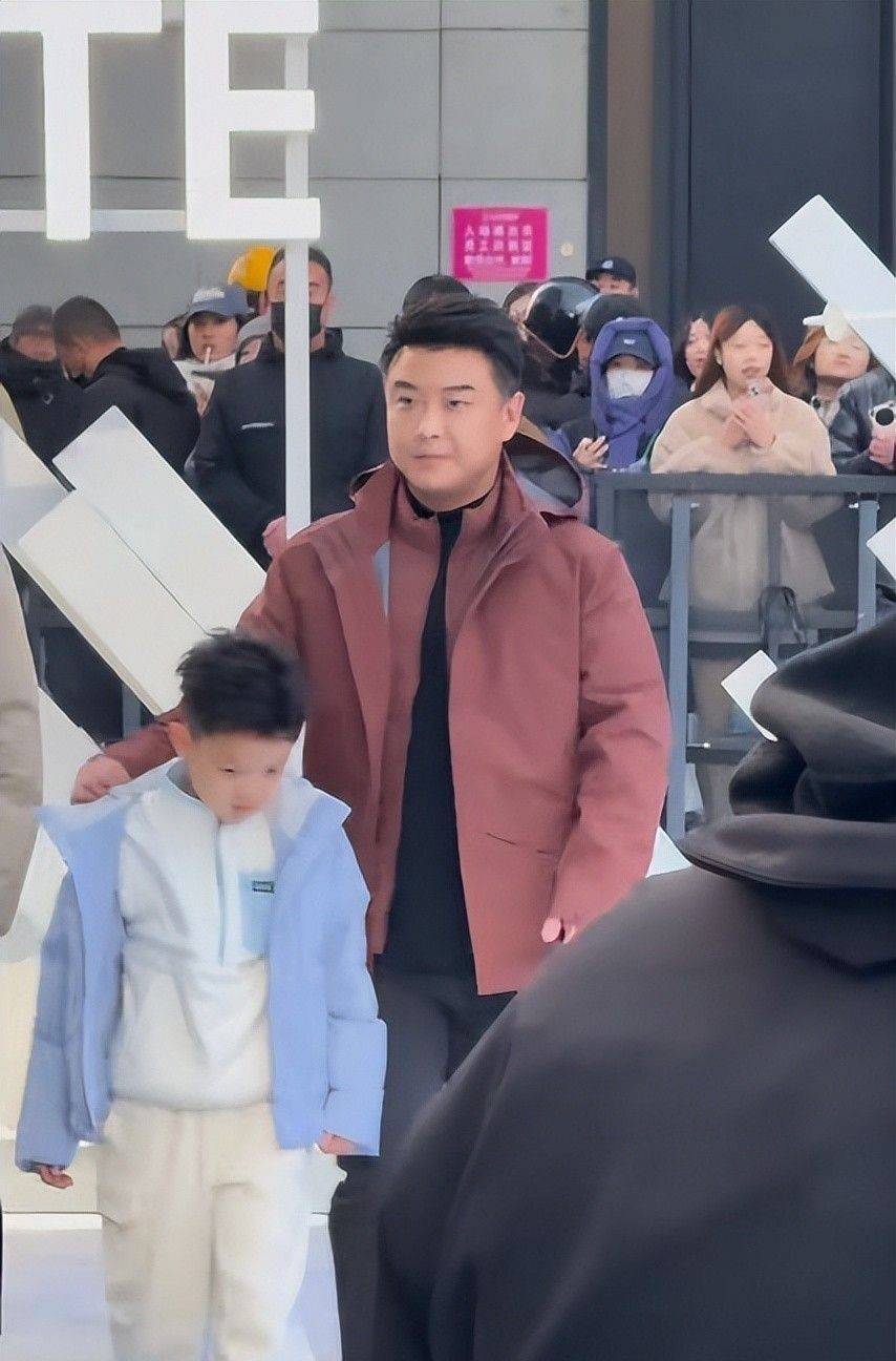 当天一家人整体造型堪称“教科书级”的亲子穿搭典范。王皓身穿一件深酒红色休闲西装,内搭高领针织衫,下着卡其色直筒长裤,脚踩一双纯白运动鞋,整体风格简约却不失格调,虽未刻意修饰,却自然流露出挺拔干练的体态。