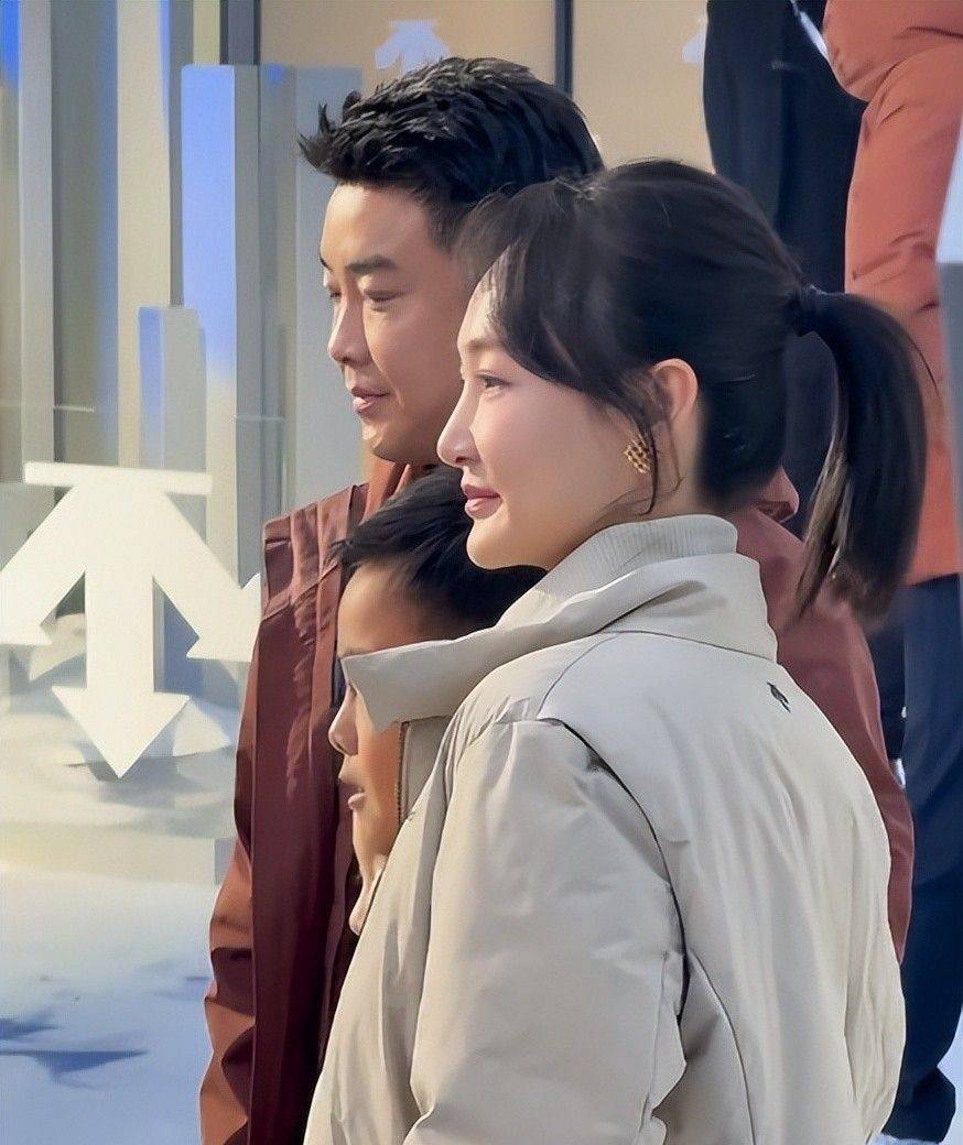 妻子闫博雅身披一件米白色轻质羽绒外套,扎着干净利落的低马尾,妆容清淡素雅,没有过多雕琢,却散发着温润如玉的知性之美。